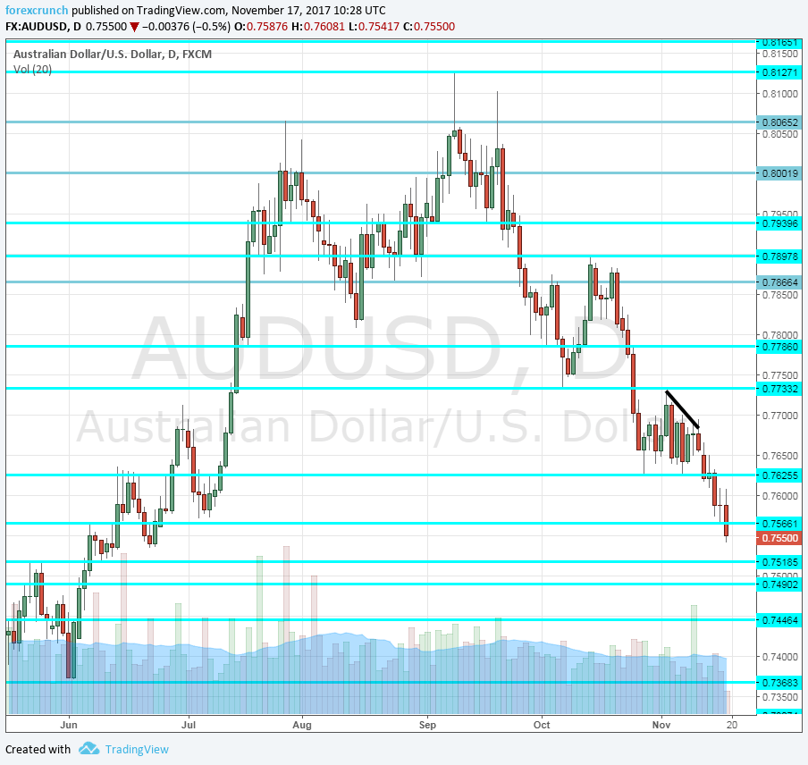 Even lower, we find 0.7565 was a low point before the pair shot higher in July. The last line, for now, is 0.7515.