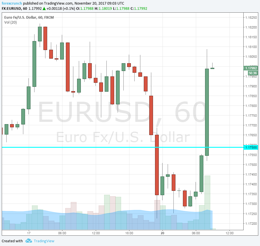 The worries about the failed German coalition talks sent EUR/USD some 50 pips lower. But this did not last. The pair is already back to 1.18, even exceeding the opening levels. This is more than a full recovery.