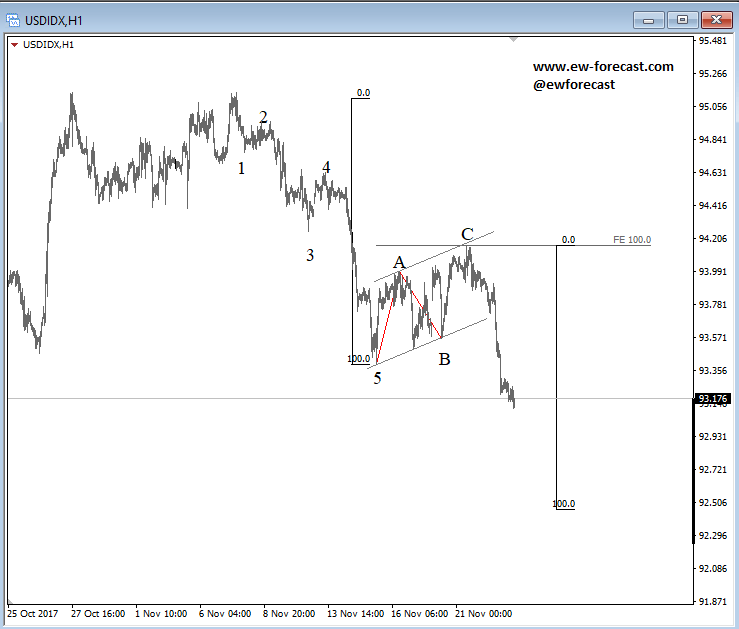 We have seen a nice push down on USD Index after an A-B-C recovery, which has now room for 92.40. This caused an opposite move on EURUSD.