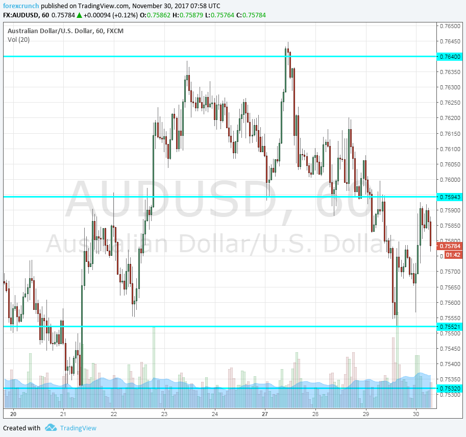 AUD/USD is stable around 0.7575, balanced on the day, while other currencies continue losing ground against the US dollar. Support awaits at 0.7550, followed by 0.7530. Resistance is at 0.7590, and then 0.7640.