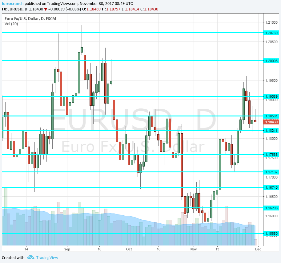 EUR/USD was trading around 1.1830, very much in the around the levels seen since yesterday morning. The pair slipped off the highs it reached on Friday. This is mostly due to the dollar’s strength: a robust GDP read, an upbeat speech from Yellen and also hopes for a successful vote on tax cuts in the US Senate all gave a boost to the greenback.