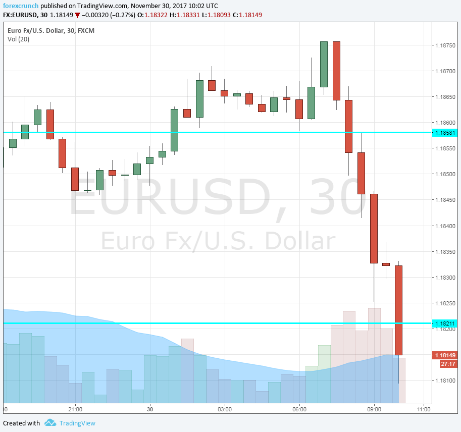 Inflation is a global issue, better said: lack thereof. Headline CPI missed expectations with only 1.5% y/y in November in the Flash report. Core inflation also fell short with only 0.9%. Good news does come from the unemployment front: a surprising fall to 8.8%. The peak was above 12% in 2013.