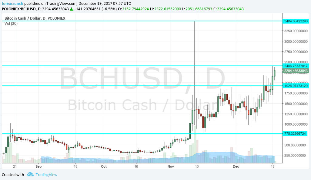 Bitcoin Cash currently trades at around $2,300 after reaching a high of $2,406 earlier in the week. A spike to $3,484 was recorded in November but seemed premature. The current rise looks more gradual, thus having a better basis. Support awaits at $1926 and $775.
