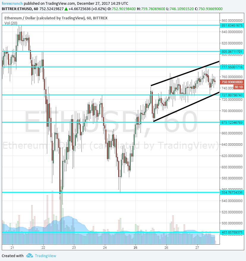 The digital currency is supported at $727, a significant level that served as resistance around Christmas, worked as a swing low and also defines uptrend support.