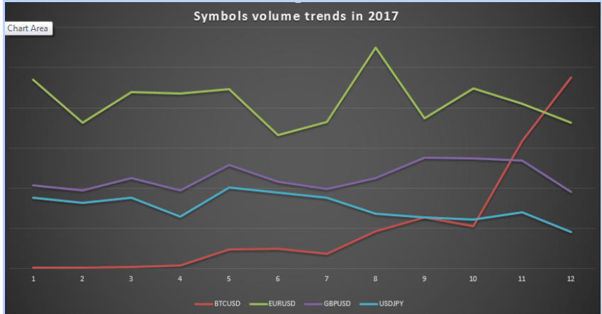 Interest in cryptocurrencies, or “alt” (alternative) currencies, as they are sometimes called, has skyrocketed due to the unprecedented volumes seen on international cryptocurrency exchanges. Recently, the volume of the benchmark BTC/USD pair exceeded that of EUR/USD, the most popular of the major fiat currencies traded in 2017.
