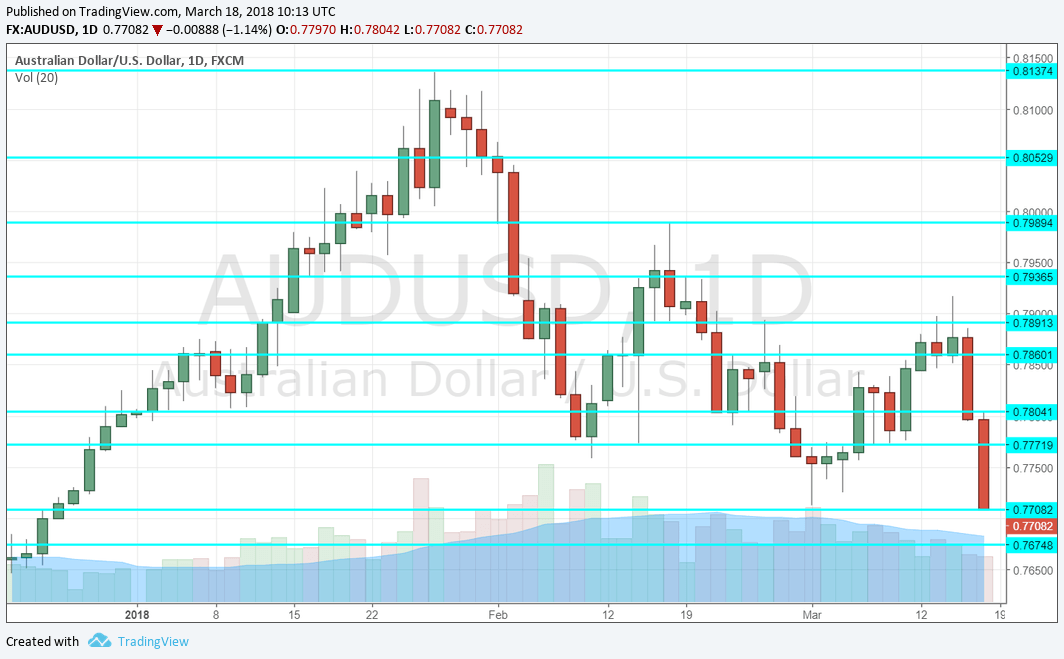 The Australian dollar fell on fears of trade wars and ahead of the Fed decision. The upcoming week features important events from Australia: the jobs report and also the RBA meeting minutes. Will the pair recover? Here are the highlights of the week and an updated technical analysis for AUD/USD.