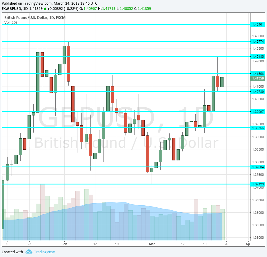 1.4220 was a swing high in late March 2018. 1.4150 capped the pair in mid-February.