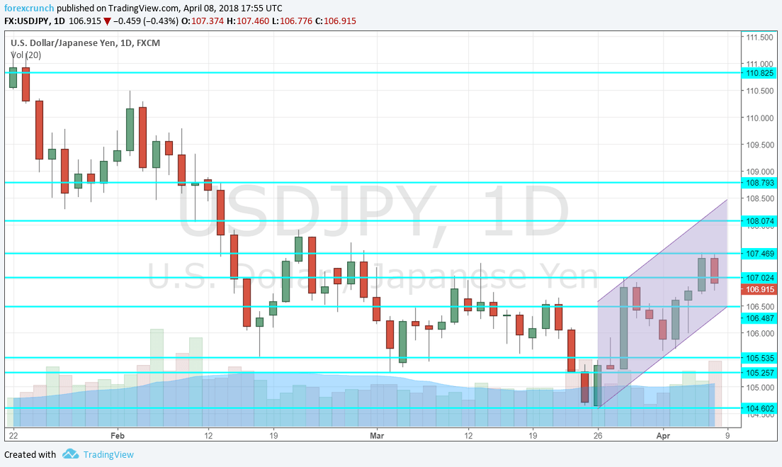 Dollar/yen started off the new fiscal year by extending its gains and moving higher. The optimism about a deal in the Korean peninsula, some optimism from Powell and a rise in US wages beat the fears of a trade war, at least for now. Can it continue?