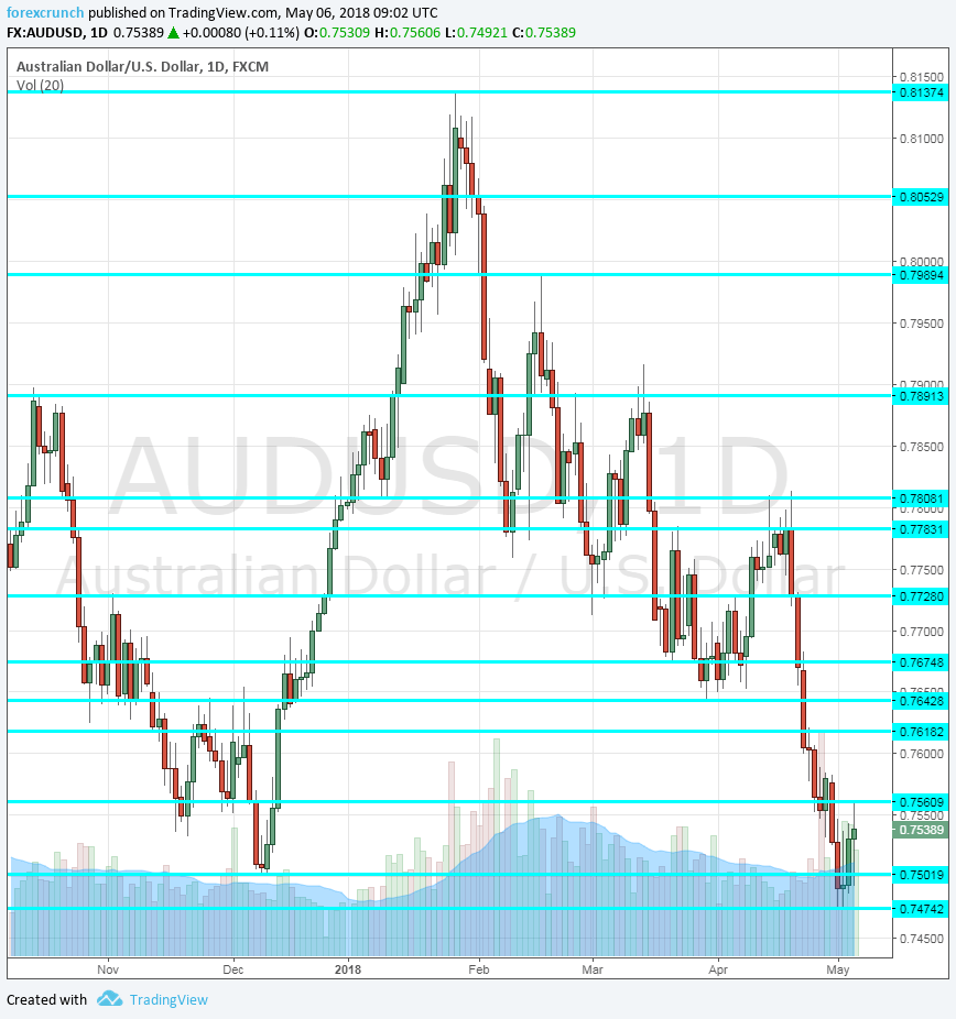 0.7560 is the next level to watch after it was the recovery level in early May. The round number of 0.7500 remains important despite the recent breach.