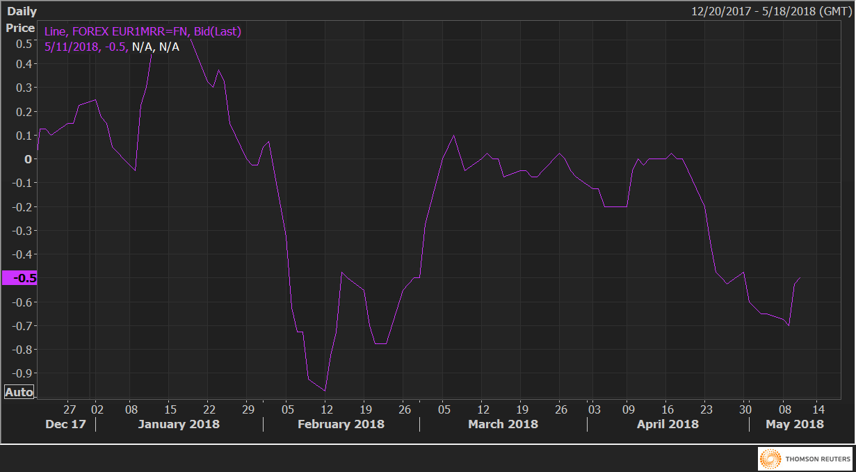 EUR/USD risk reversals: Bearish bias weakens after below-forecast US CPI