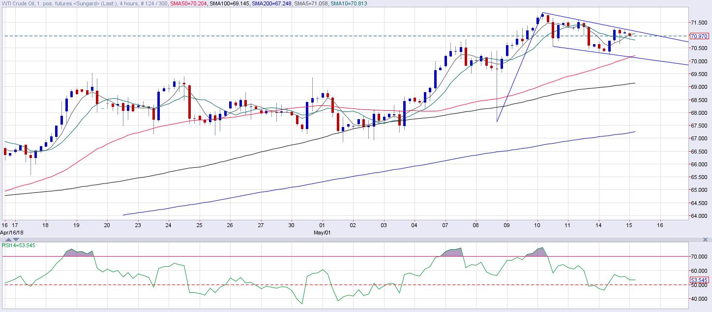 • WTI crude oil is trading at $71/barrel, i.e. just short of recent 3.5-year high of $71.88