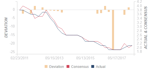 Australia Wage Price Index (YoY) meets forecasts (2.1%) in 1Q