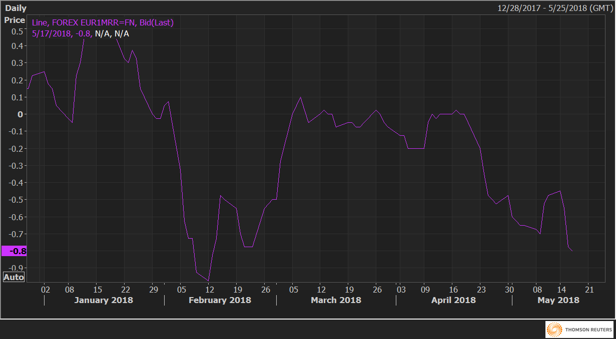 EUR/USD risk reversals: EUR put bias strongest since Feb. 22