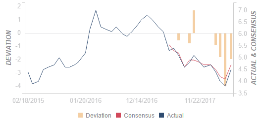 South Africa Consumer Price Index (YoY) registered at 4.5%, below expectations (4.7%) in April