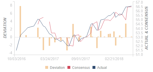 United States Markit Manufacturing PMI came in at 56.6, above forecasts (56.5) in May