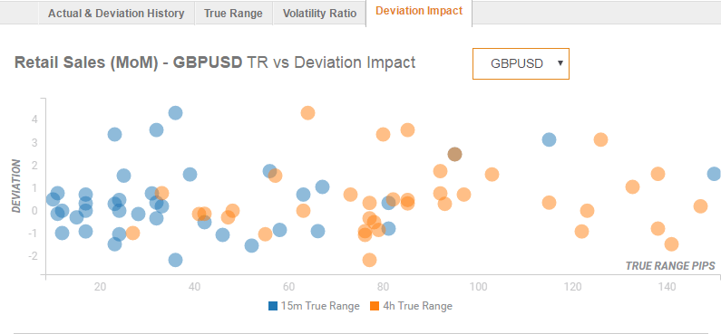 Readers can find FX Street’s proprietary deviation impact map of the event below. As observed the reaction is likely to remain confined between 10 and 70 pips in deviations up to 3.5 to -1.5, although in some cases, if notable enough, a deviation can fuel movements of upto 100 pips.