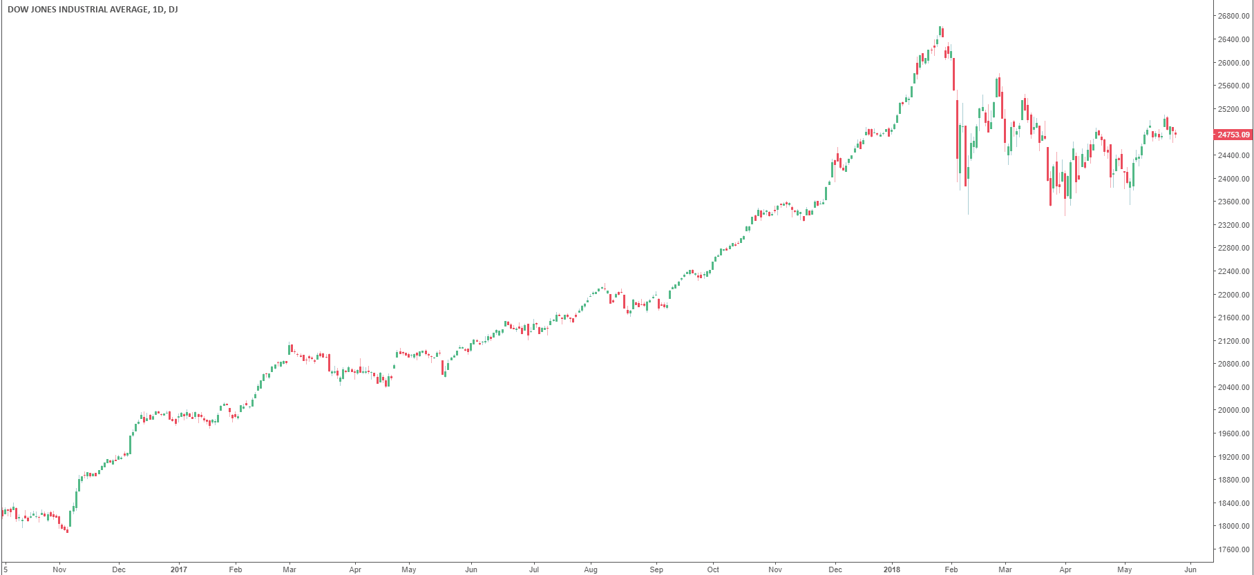 What also spooked markets (on Thursday) was the news that Trump canceled the summit with the North Korean dictator Kim Jong Un which was planned on June 12 in Singapore. The news sent stocks lower and gold past the $1,300 a troy ounce level.