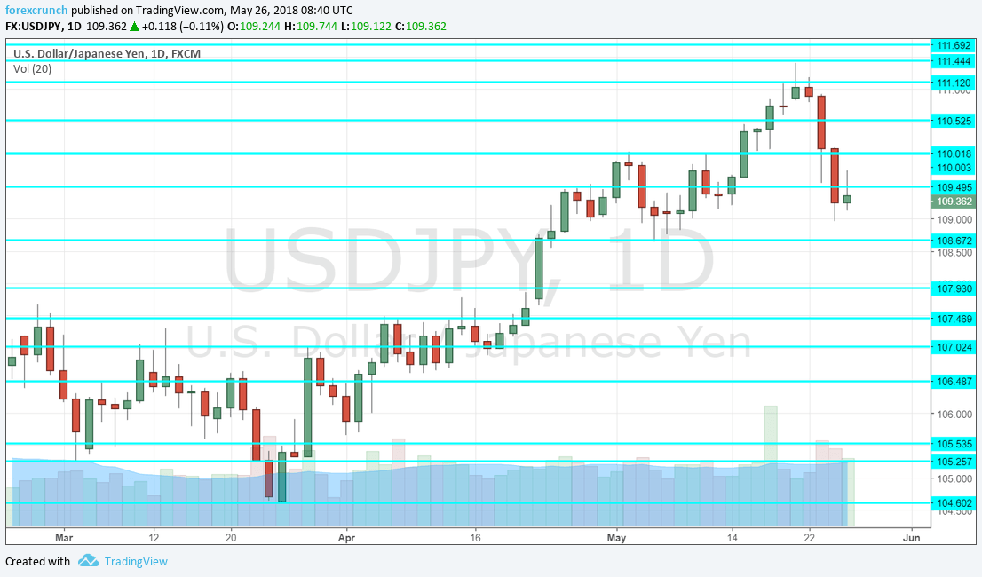 Further down, 110.50 was a swing high in February. The round number of 110 serves as a psychological level. 109.50 held the pair back in late April.