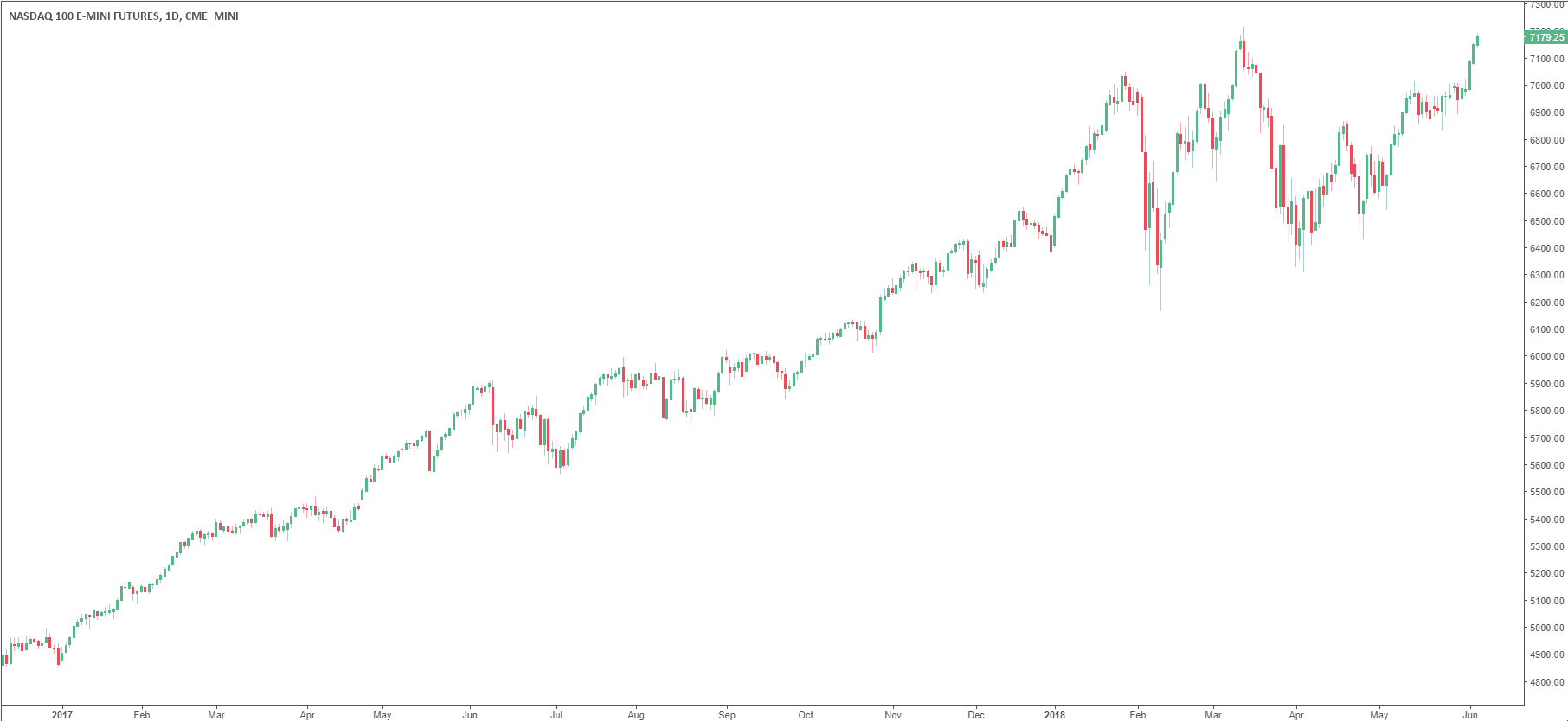 The Nasdaq was led by Netflix, Amazon and Apple while the S&P 500 and the Dow Jones traded mainly sideways as investors are worried about international trade as  the US-China trade war saga is far from over.