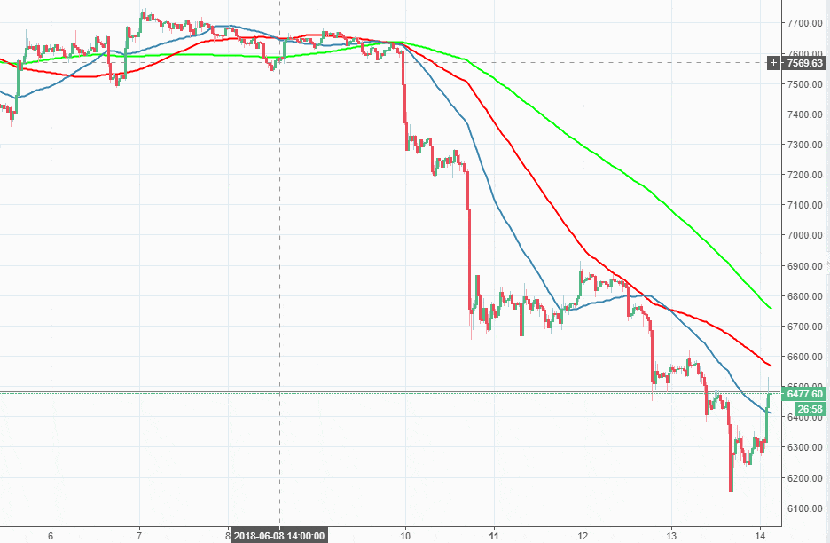 - Bitcoin up nearly 3% since the beginning of the day, capped by $6,500.