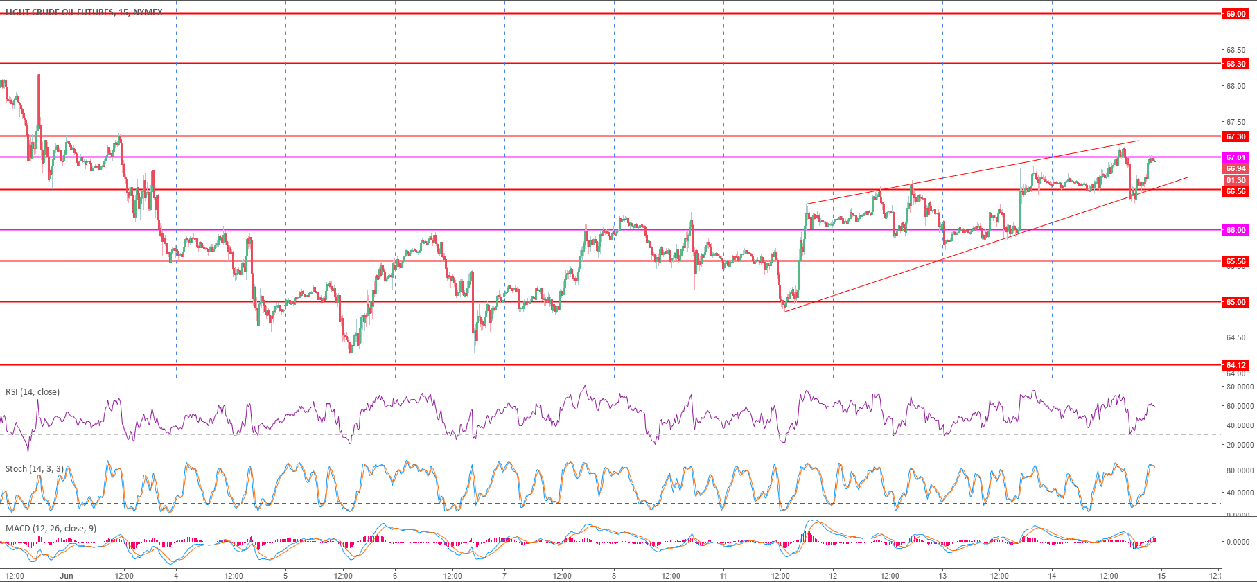 Crude oil WTI 15-minute chart