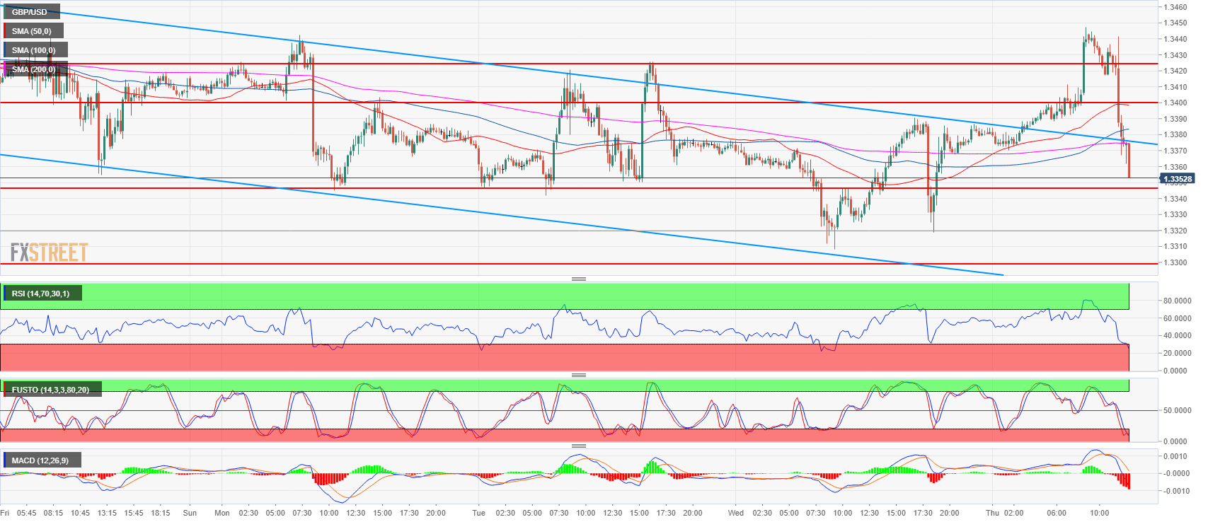 GBP/USD Technical Analysis: Cable drops back below daily lows after attempting to break 1.3450
