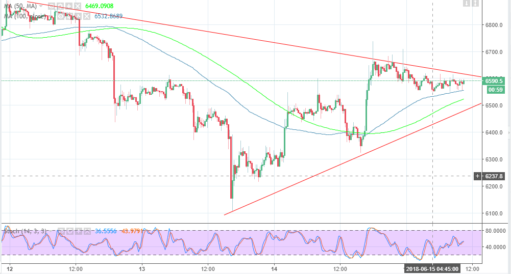 Bitcoin price is trading subtle lock-step movements slightly below $6,600. The bearish trendline is preventing gains marginally above $6,600. BTC/USD opened the session on Friday above $6,630 after which it embarked on a brief downward trend in the Asian trading hours but the support at the 100 SMA has managed to stand ground at $6,550.