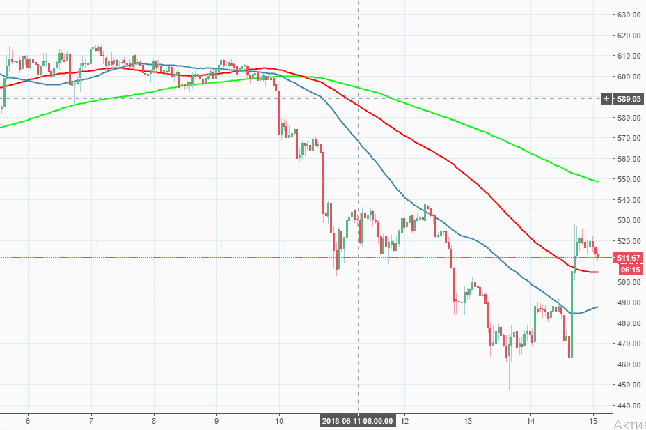 The Strong upside momentum took ETH/USD above critical $500 level, however, the next hurdle at $530 stopped the recovery for the time being. Once it is cleared, we may proceed to the resistance at $548 (200-SMA, hourly chart) and towards the ultimate bullish aim at $600. On the downside, the support comes at $500 with 100-SMA on approach. Then comes $487 support created by 50-SMA (hourly chart) and $400.