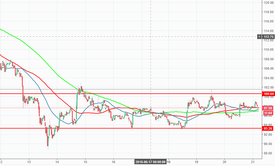 LTC/USD stays in a tight range, capped by $100 on the upside and $93.00 on the downside. A clear breakout in either direction si needed for the coin to gain momentum in the near-term. Near-term support is seen at $96.00 with a host of SMAs creating a strong hurdle for LTC bears.