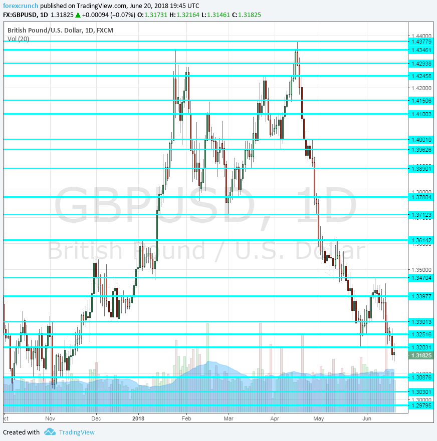 1.3250 was a swing low in early June. Even lower, 1.3205 was the low point in late May. 1.3080 served as support back in November 2017. The ultimate line is 1.3000.
