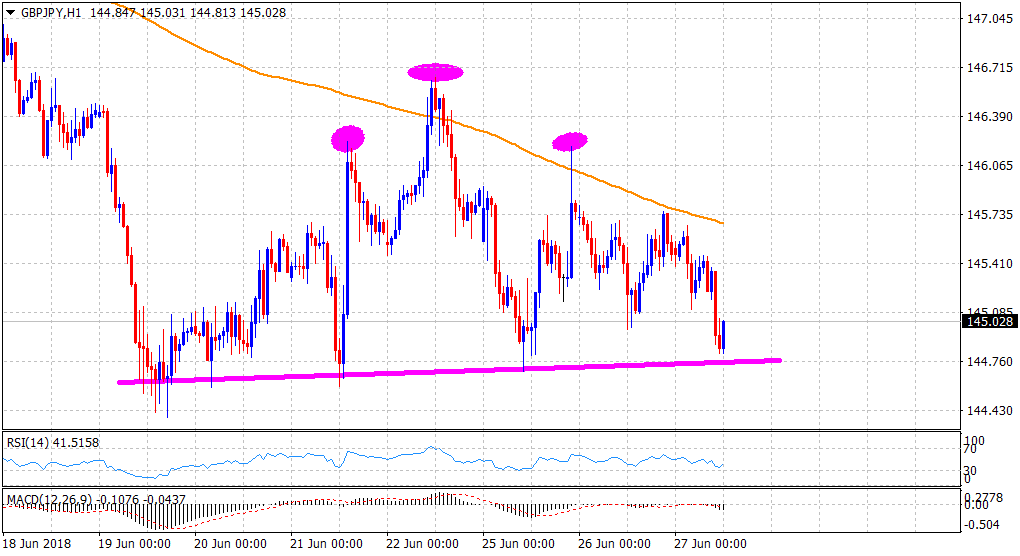 “¢ The cross has failed to sustain above 200-hour SMA and now seems to have formed a bearish Head & Shoulders chart pattern on the 1-hourly chart.
