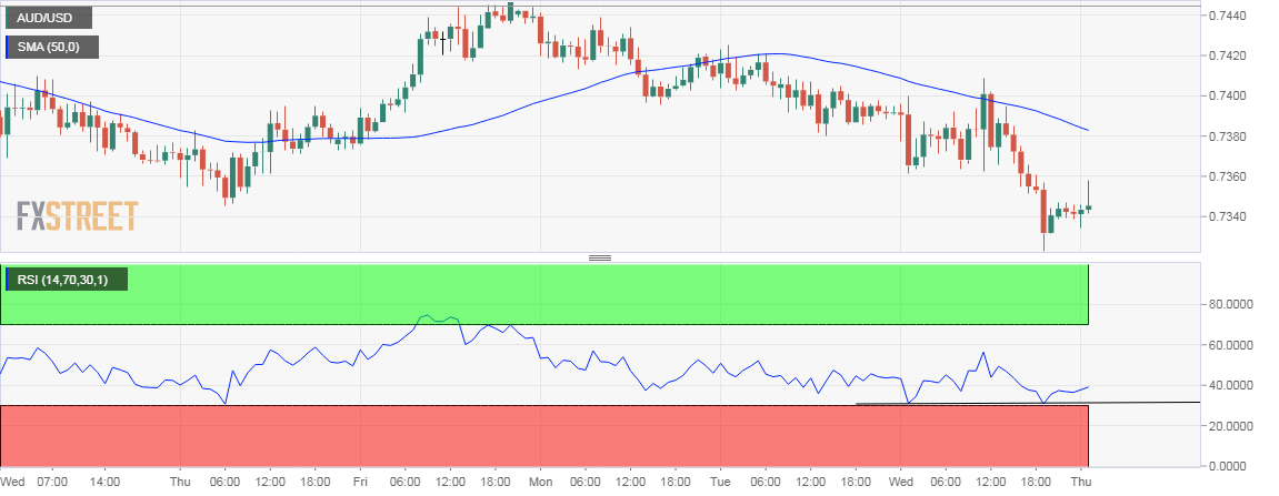 - Also, the hourly RSI has diverged in favor of the bulls at a time when the spot is trading at the key support of 0.7327 – 61.8 percent Fibonacci retracement of Jan 2016 low – Jan 2018 high.