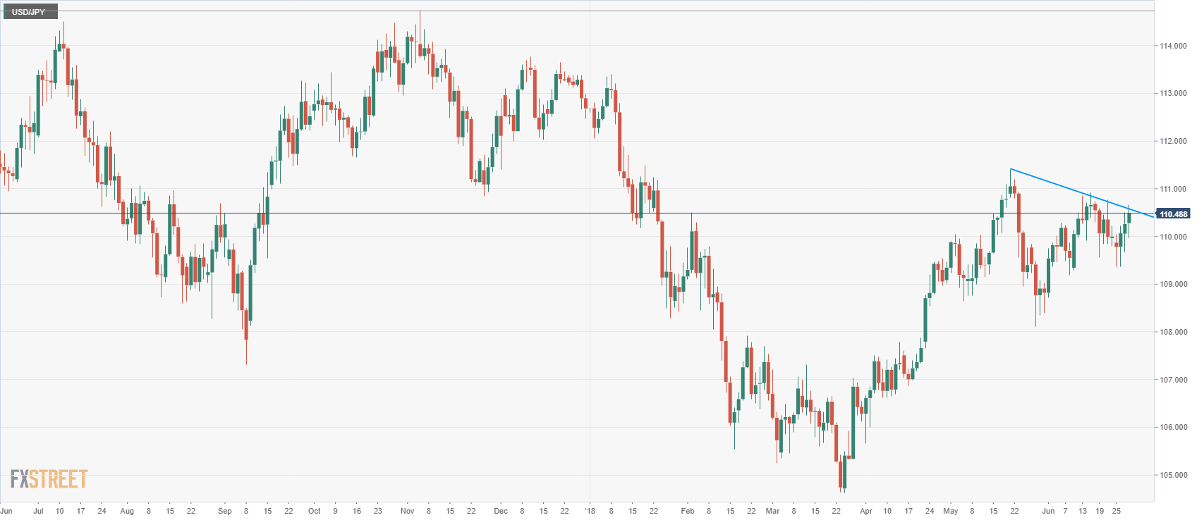 - USD/JPY is pushing higher for the third day in a row. It has found resistance near the 110.62 supply level and is now in correction mode.