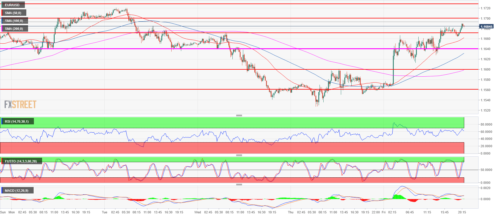 - EUR/USD bulls gained about 120 pips on Friday as they almost reached the 1.1700 level.
