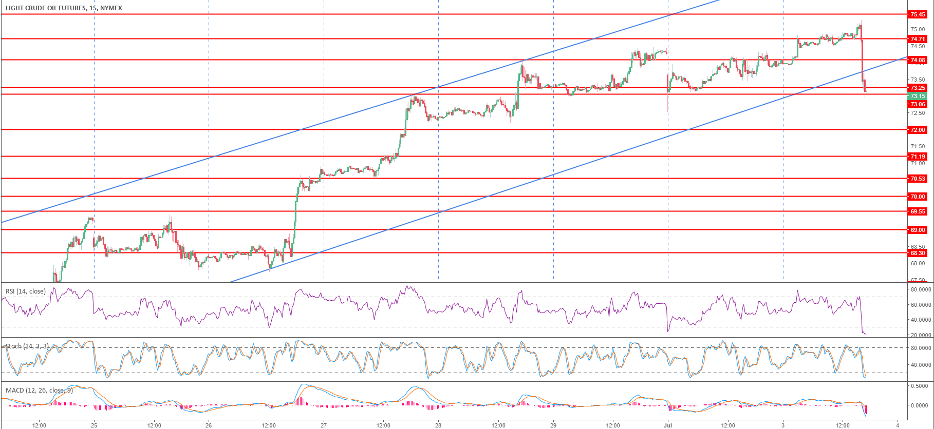 Crude Oil WTI 15-minute chart