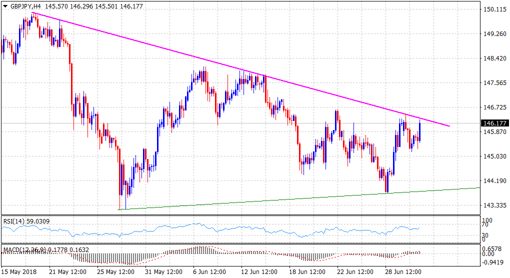 “¢ Regains positive traction to reverse previous session’s downfall and test a descending trend-line resistance, extending from May 18 top through highs set on June 12/13/14.