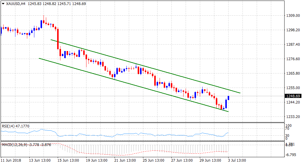 Gold Technical Analysis: rebounds sharply from a descending trend-channel support