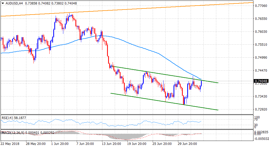 “¢ On the 4-hourly chart, the pair is currently placed at an important confluence region, comprising of a short-term descending trend-channel resistance and 100-period SMA.