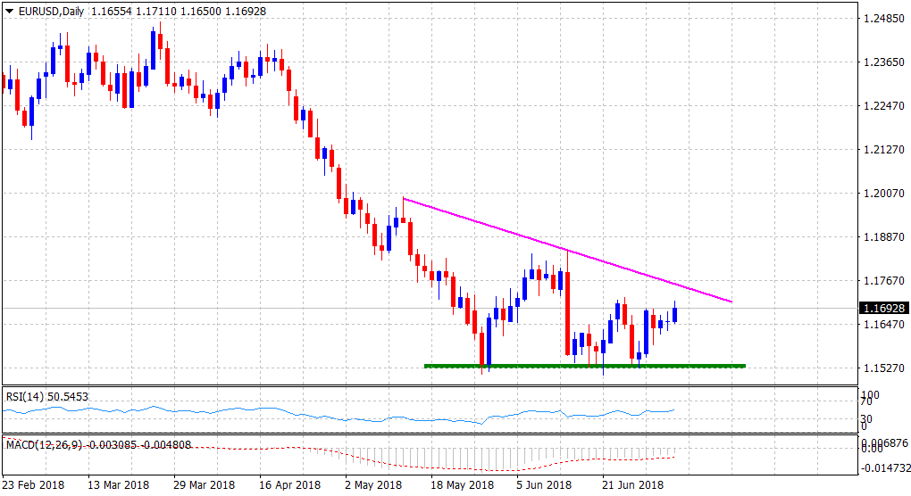 “¢ The prevalent USD selling bias provides an additional boost and lifts the pair to over one-week high, just above the 1.1700 handle.