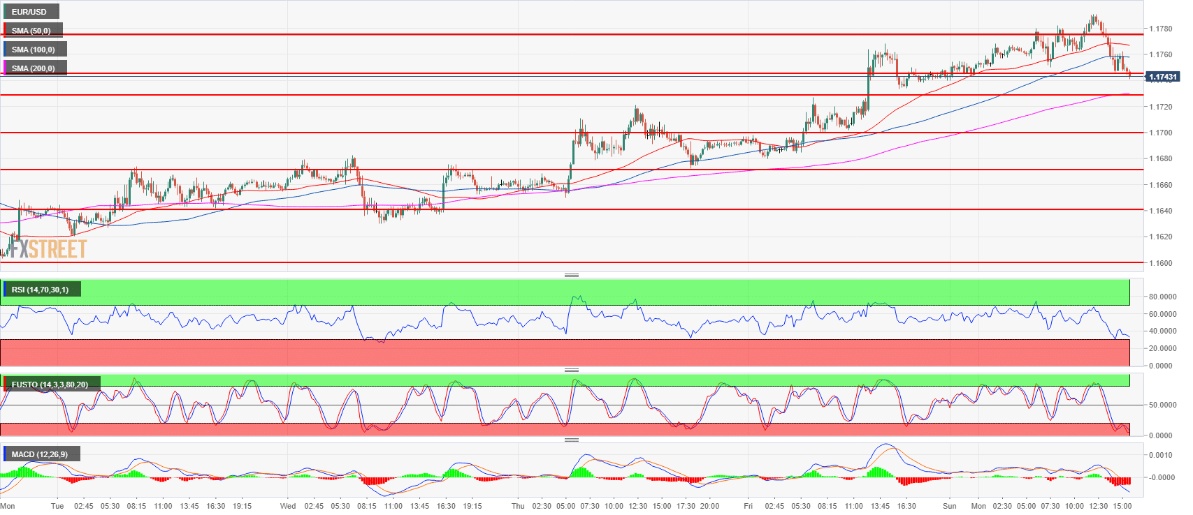 - Some Euro bulls are starting to give up as EUR/USD is trying to break below 1.1740 the open of the week. A bear breakout below the level might see some buyers capitulation and acceleration of the sell-off.