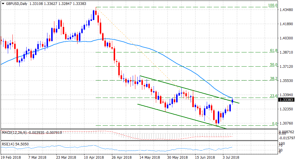 “¢ Reverses an Asian session dip to sub-1.3300 level and finally breaks through a short-term descending trend-channel formation on the daily chart.