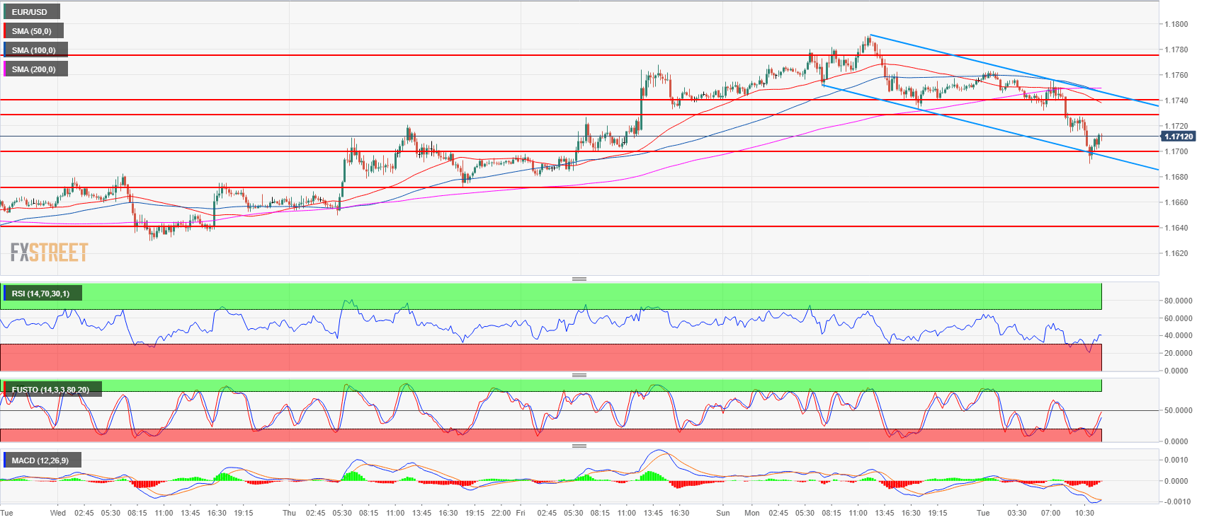 - EUR/USD is trying to find some support at 1.1700 but bull attempts should be capped in the 1.1730-1.1740 area if the bears keep the momentum going.