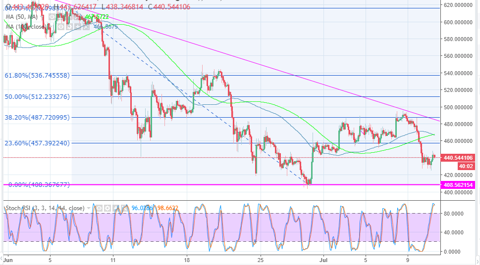 Ethereum price is currently staging a recovery after testing the support at $430. The virtual currency is making attempts to retrace steps towards the key resistance at $460. However, it is not easy as sellers are not ready to give up control in spite of the buyers yearning for a relief following the selling pressure.