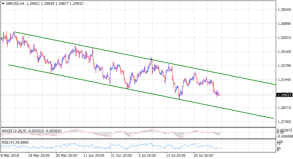 The pair has been trending lower alongside a downward sloping trend-channel formation on the short-term chart. With RSI (14) on the daily chart still holding above oversold territory, a follow-through downfall, even below the 1.2900 handle, now looks a distinct possibility.