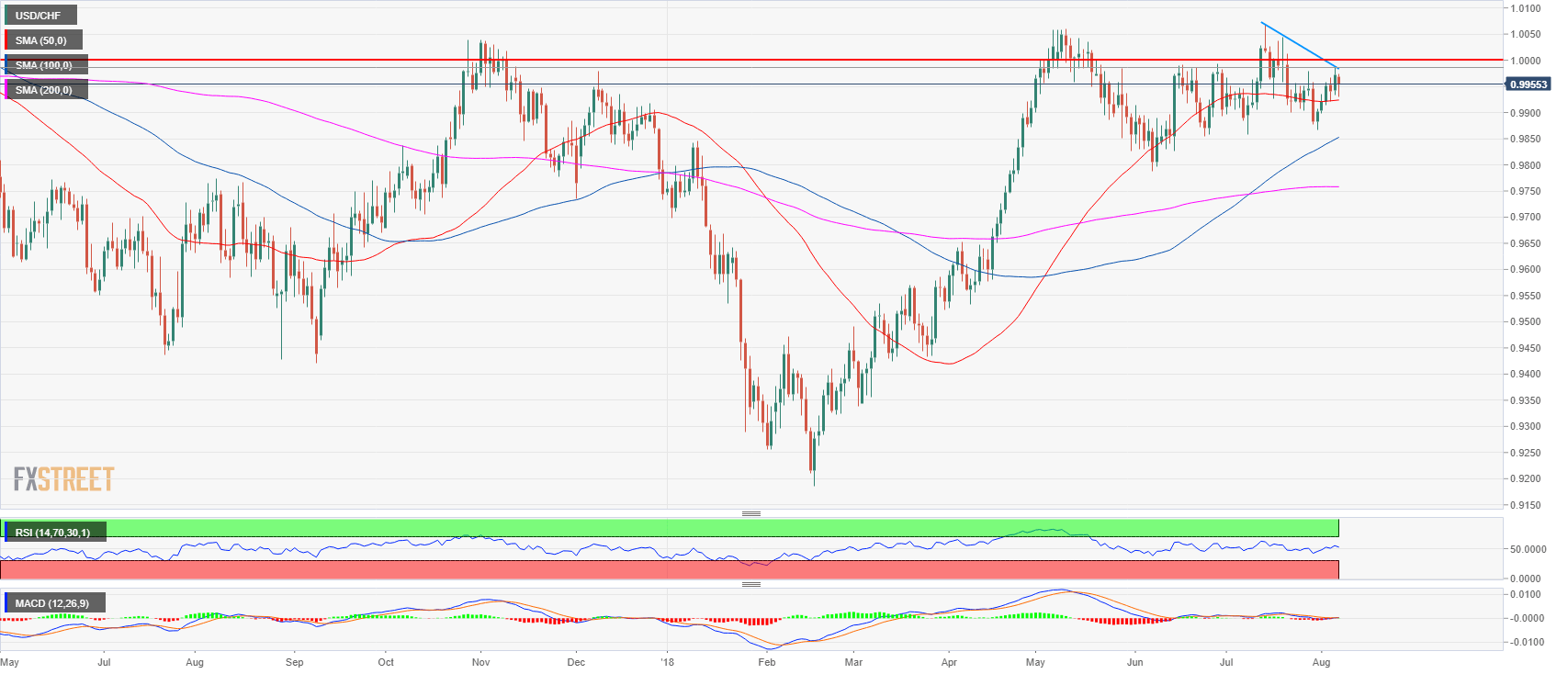 - In the absence of a break above 0.9989-1.0000 area, USD/CHF is likely going to trade sideways to down in the near future. The short-term resistance is currently the 0.9960 level.