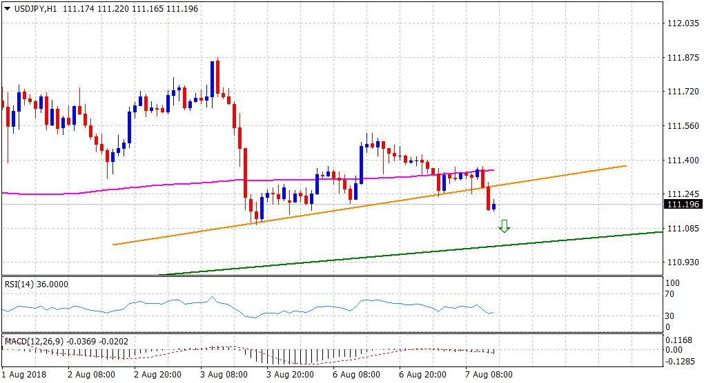 “¢ The pair remained capped at the 200-hour SMA for a major part of today’s trading session and has now broken below a short-term ascending trend-line support on the 1-hourly chart.