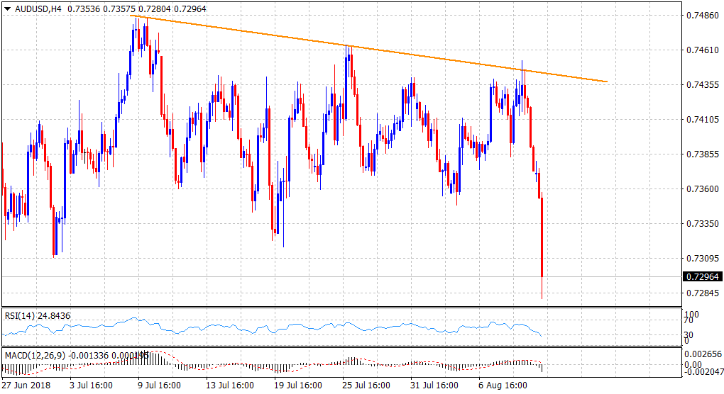 “¢ Weakness below the 0.7300 handle now seems to have confirmed a bearish breakdown below an eight-week-old broader trading range.
