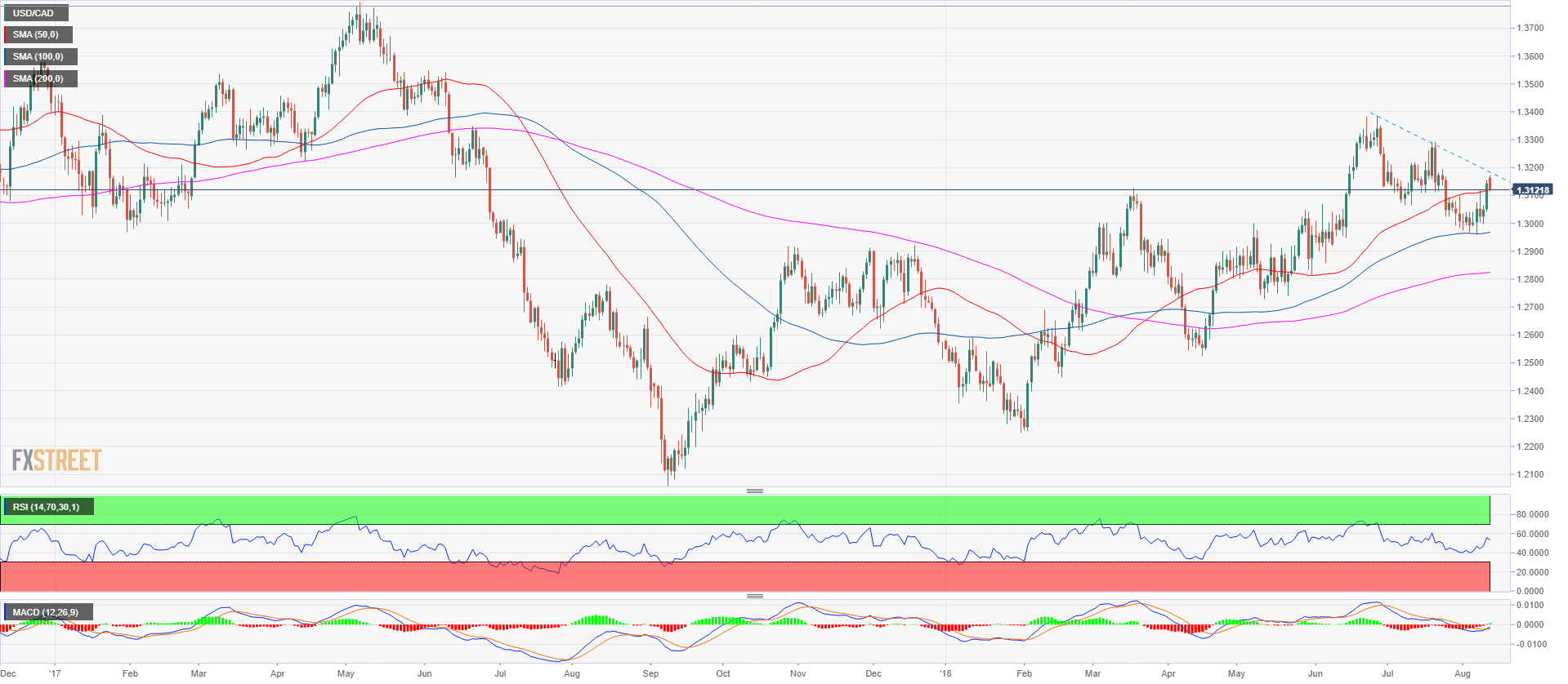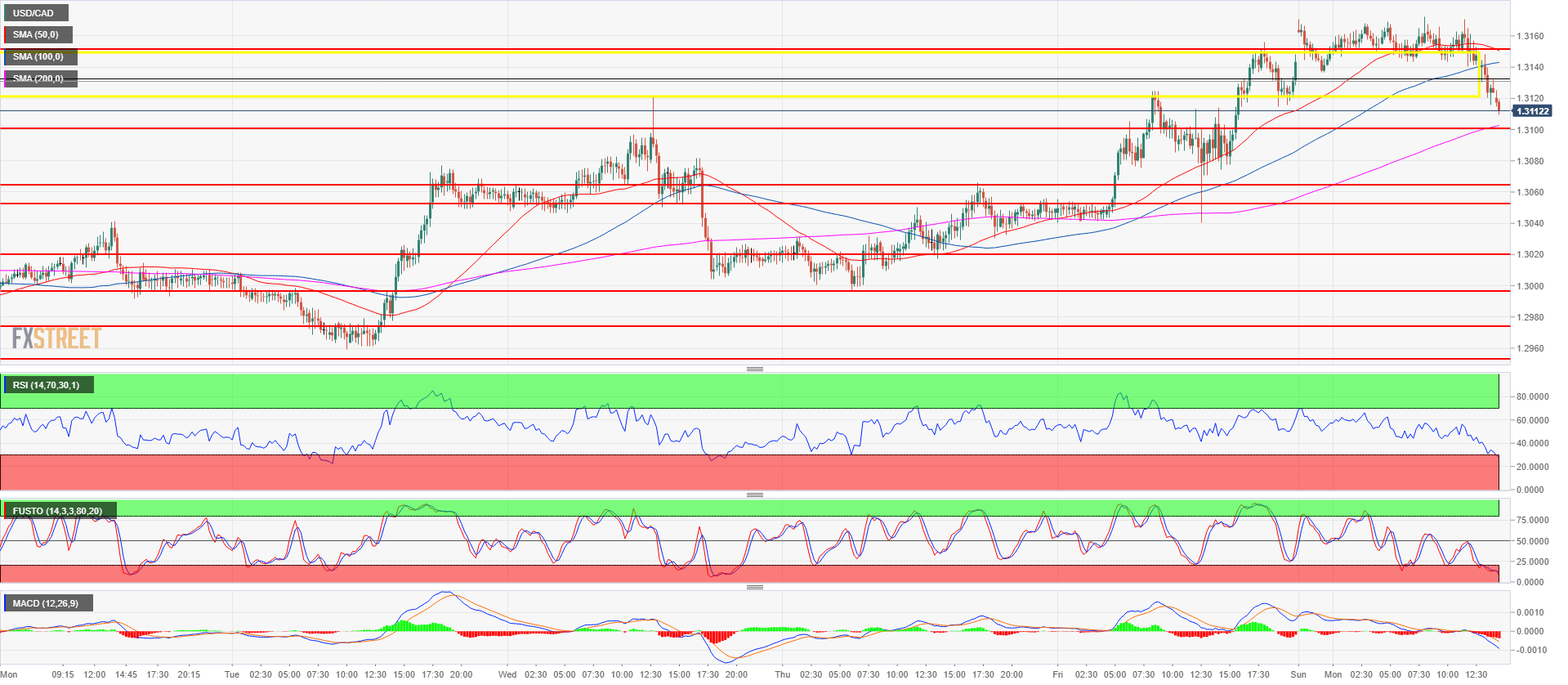 - USD/CAD is starting the week on the back foot as the currency pair is correcting below the 1.3120-1.3155 key supply/demand level.