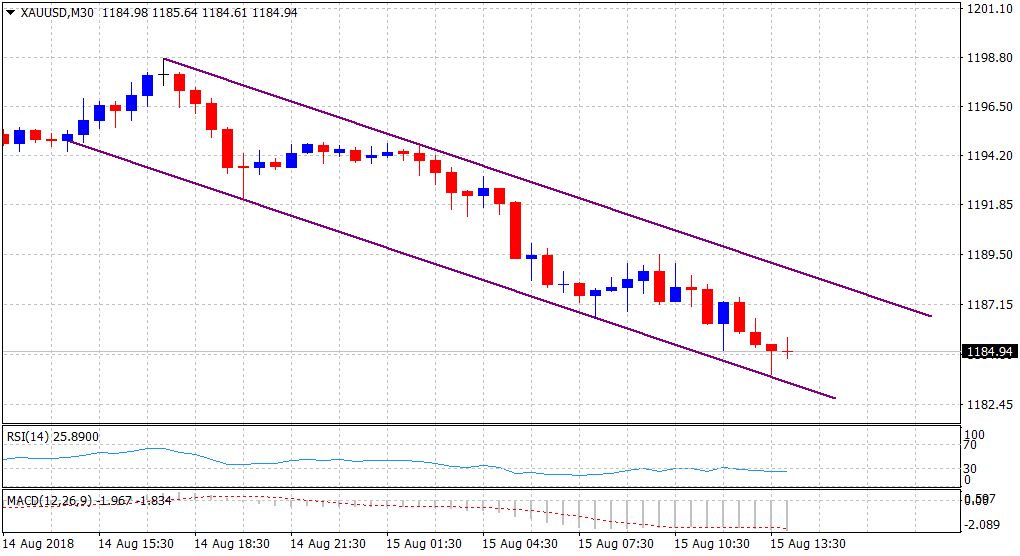 “¢ The precious metal has been trending lower since the New-York trading session on Tuesday alongside a downward sloping trend-channel on the 30-min chart.