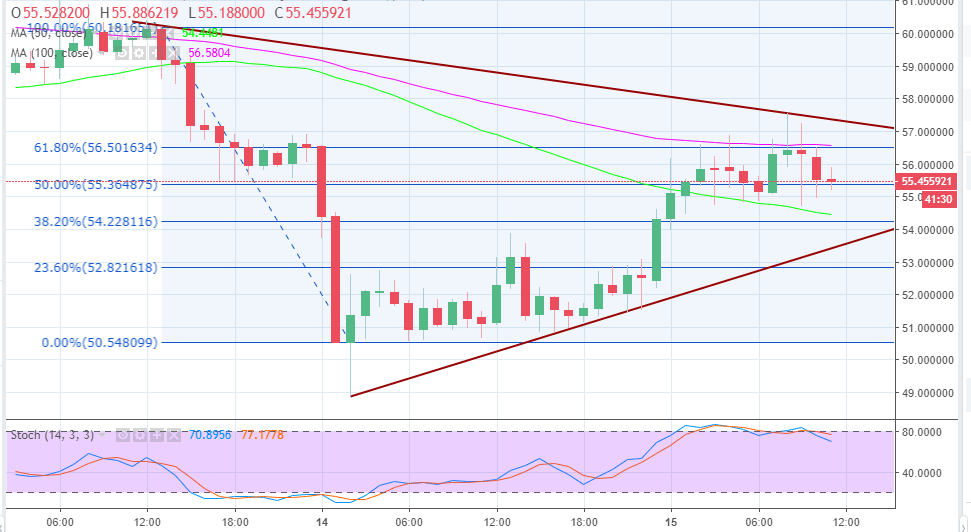 Home Litecoin price analysis: LTC/USD rebound capped below $57.00, bear trend testing $55.00 support